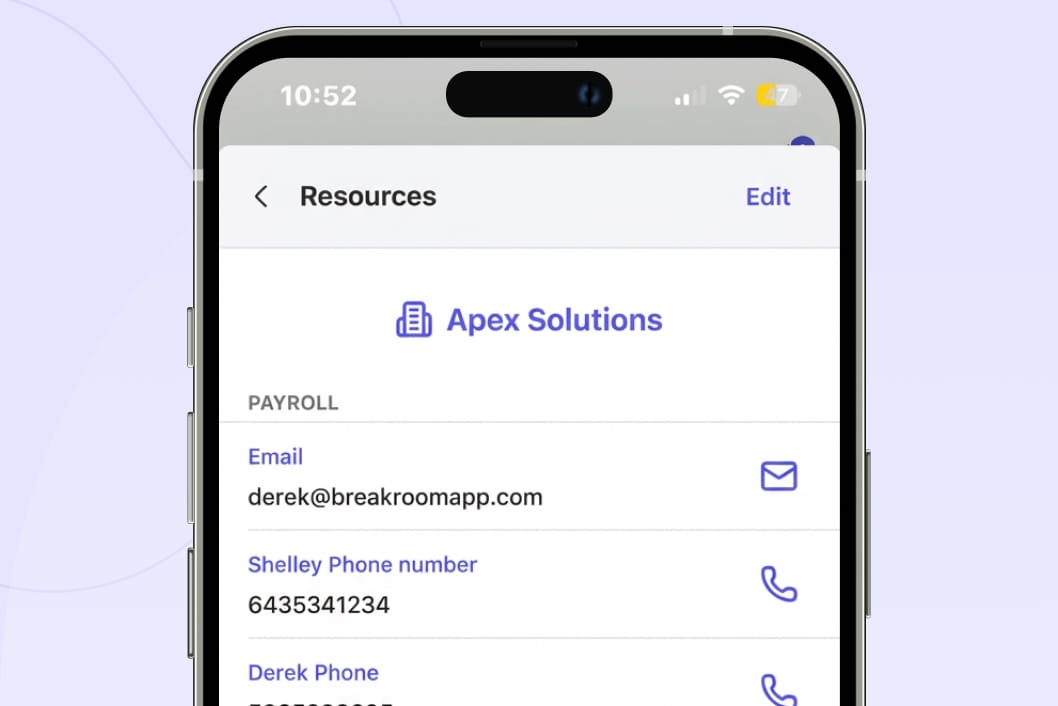 "I think Breakroom will work well for us. We've looked at a lot of different systems. I need it to be pretty simple, and I can't have them walk through 10 different steps. I need to be, like, quick, and they'll do it."