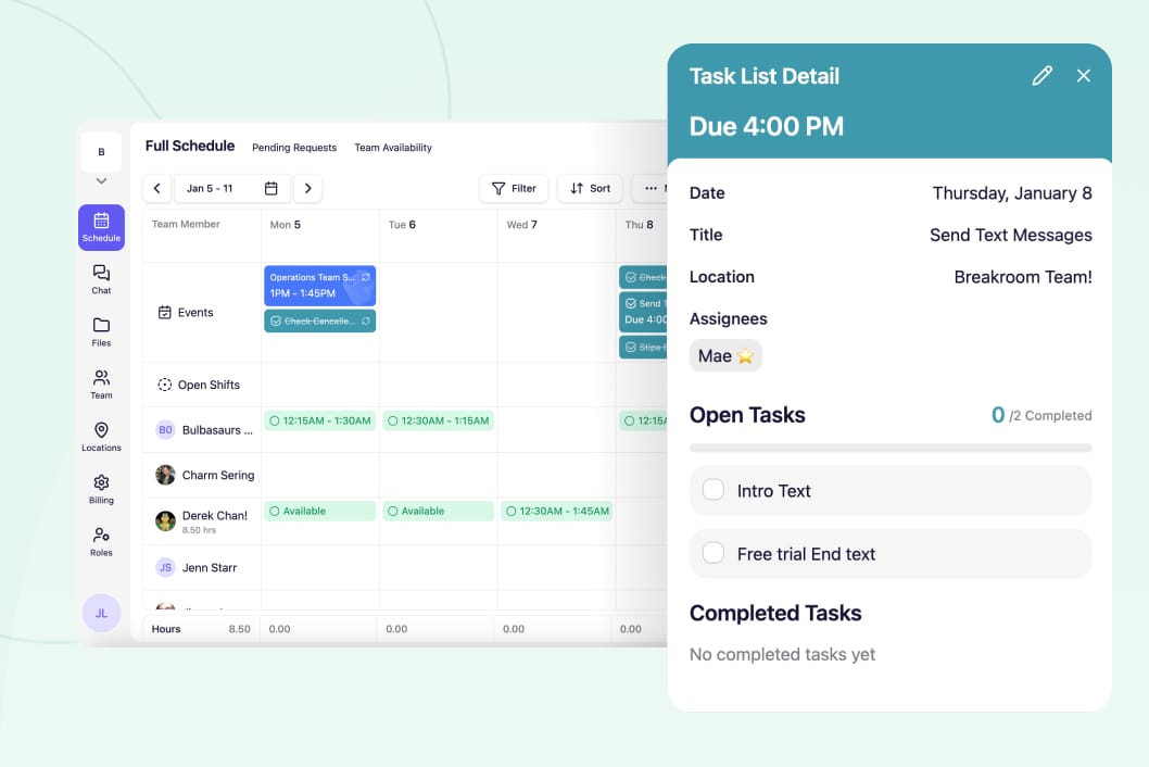 Build and share schedules in minutes. Everyone sees their shifts instantly.